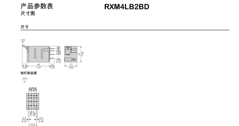 施耐德繼電器一級代理商,施耐德RXM中間繼電器,施耐德小型繼電器,施耐德插入式繼電器RXM4LB2BD產品參數表